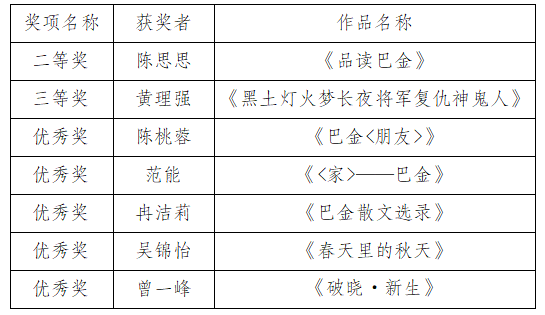 喜报|热烈祝贺我校学生在参加“品读巴金阅读创作大赛”中喜获佳绩