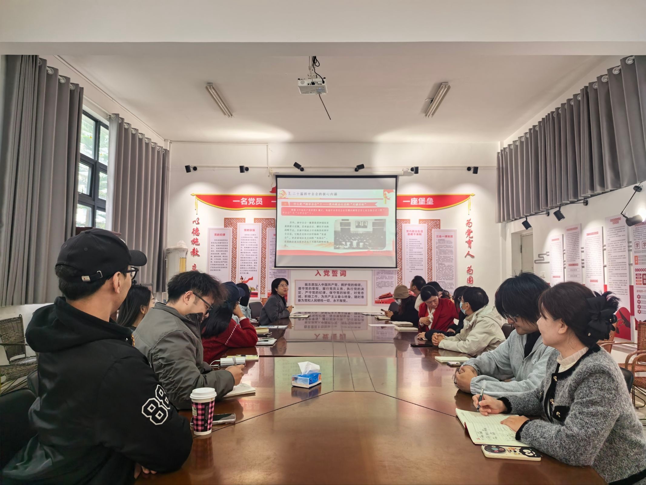 2025年12月26日上午,北海艺术设计学院学生工作部(处)在西校区学工楼204会议室组织开展党的二十届四中全会精神专题学习会。部长班媚主持会议并作主讲,部门全体人员参加学习。