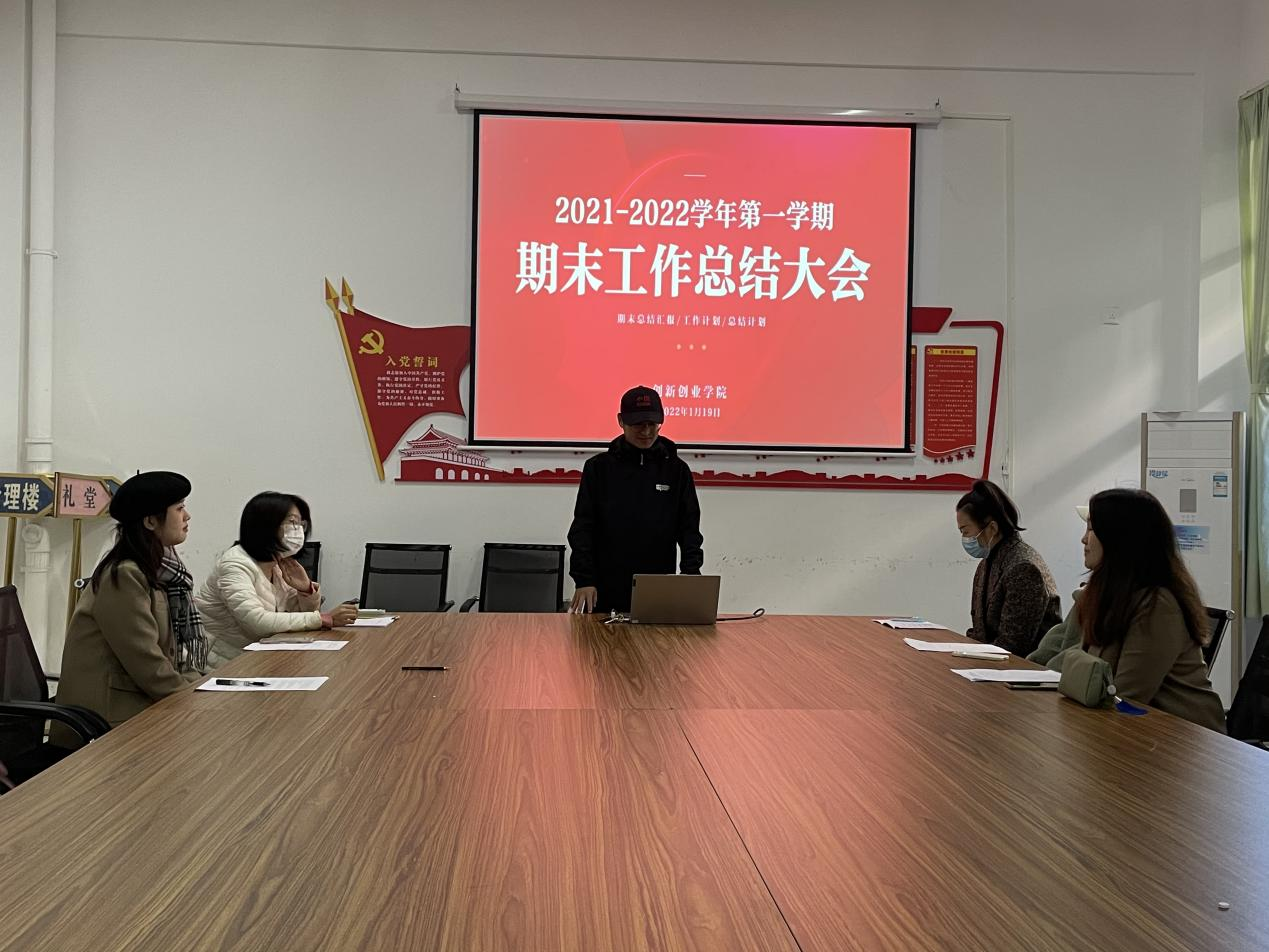 1月19日(星期三),创新创业学院在行政楼111会议室召开学期总结会,总结2021-2022第一学期学院工作。会议由创新创业学院综合办副主任王晋冀主持,创新创业学院全体教职工参加本次会议。