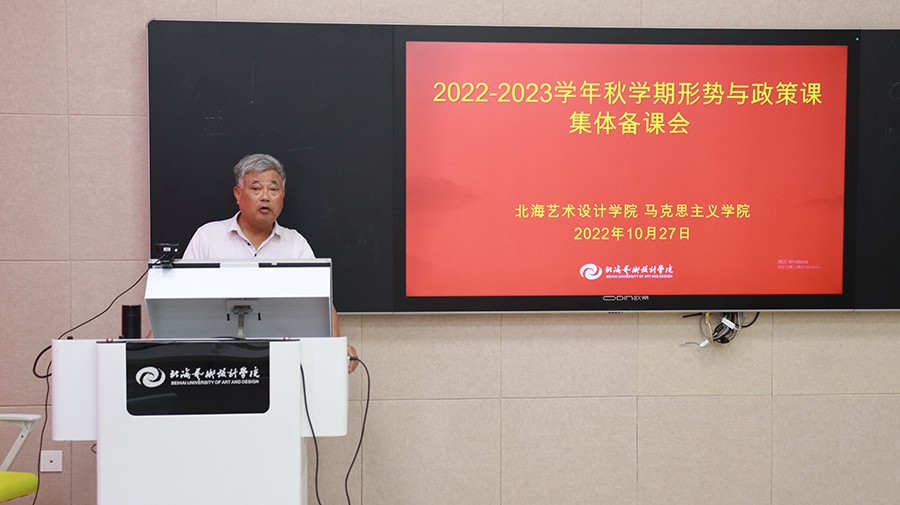 10月27日下午,我院形势与政策教研室在图书馆智慧教室召开“形势与政策”课集体备课会,由马克思主义学院院长兼形势与政策教研室主任姜献生教授主持并主讲,教研室全体教师参加,校党委书记张阳也以普通教师身份参加集体备课会。