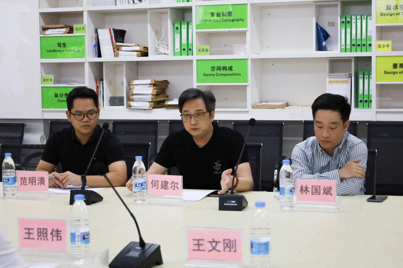 促进产教融合、实现校企合作双赢。4月9日,金昌启亚北海公司副总经理何建尔、策划经理林国斌、销售经理范明清一行3人莅临我校开展校企合作交流座谈会。会议于公德楼207会议室举行,建筑与环境艺术学院院长王照伟、综合办主任李东瑞、实验室主任李二君、环境设计教研室副主任石少平、分团委书记雷勇、实验室教师黄圣鑫、综合办秘书杨金玥、梁懿参加会议。
