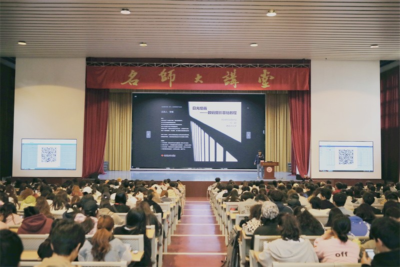 3月7日上午,国家高级摄影师李楠于我校西校区大礼堂为广大师生带来了一场题为《日光绘画——数码摄影基础教程》的精彩讲座。讲座由美术学院摄影教研室主任李炫勋主持。
