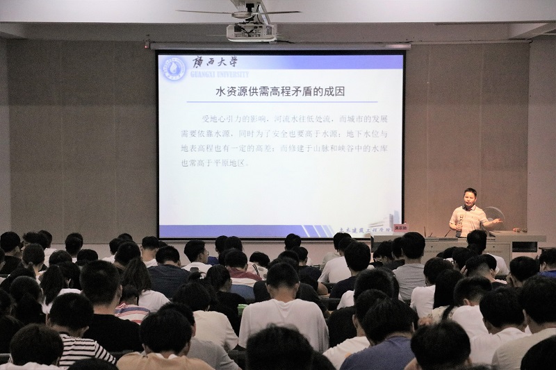 2018年5月28日20:00于我校西校区伦理楼107,来自广西大学土木建筑工程学院博士生导师莫崇勋教授,为我校师生带来一场题为《水利工程与水资源的关系》的精彩讲座,广大师生现场聆听讲座。