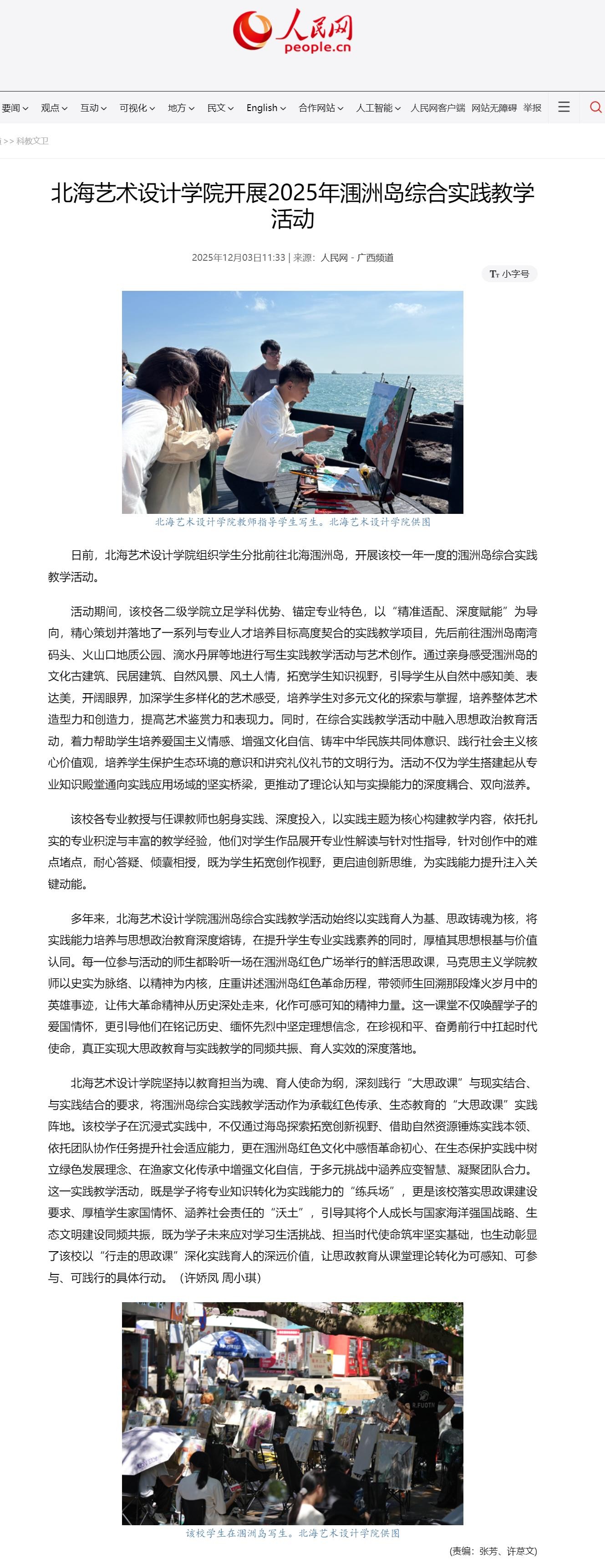 人民网:北海艺术设计学院开展2025年涠洲岛综合实践教学活动