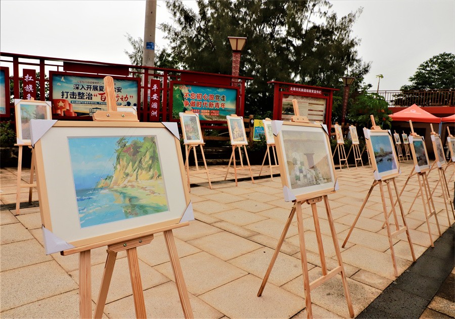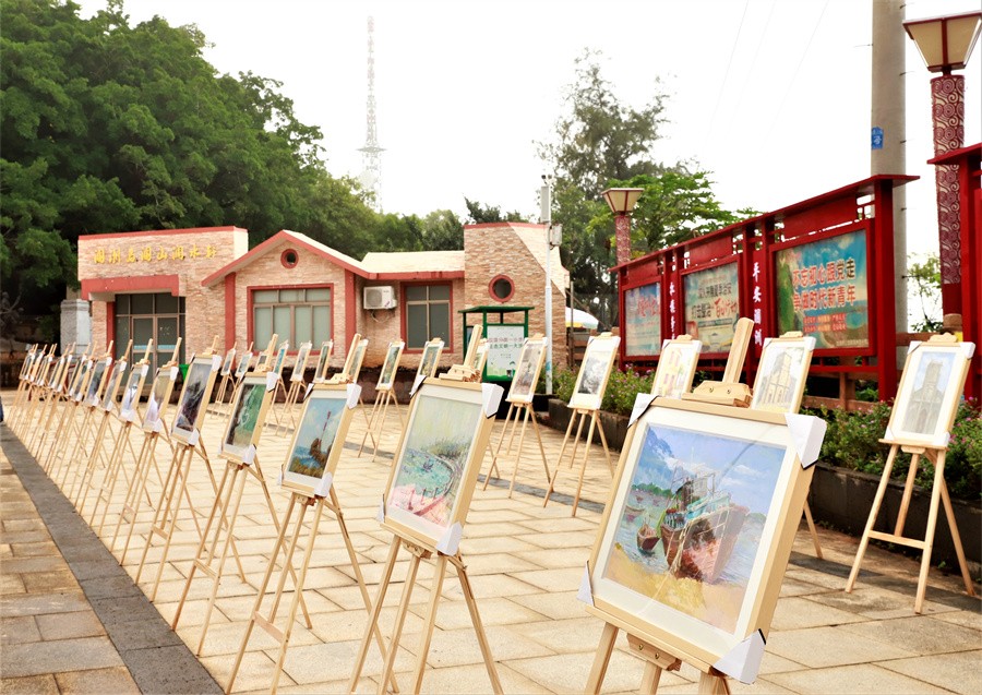 画展现场共展出40多幅绘画作品,直观表现了涠洲岛别具特色的火山地质地貌、人文景观和民俗民风的独特魅力,体现学生鲜活的创造力和丰富视角。学校课程《“最美涠洲”综合实践教学》荣获自治区社会实践一流本科课程;《风景写生》入选自治区课程思政示范课程。多年来,我校充分利用涠洲岛独特的地质地貌、人文景观、民俗民风等丰富资源,依托涠洲岛实践基地开展综合实践活动,带领学生深刻领略涠洲岛风情魅力,进行专业实践夯实综合能力的同时,激发学生对美的追求和向往、对北海的热爱和关心。