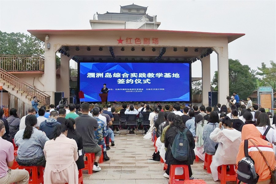 11月23日上午,北海艺术设计学院涠洲岛旅游区管委会共建涠洲岛综合实践教学基地签约揭牌仪式暨“遇见美术里的涠洲岛”画展在涠洲岛红色广场举行。北海市政协副主席张鹏飞出席仪式,涠洲岛旅游区党工委书记、管委会主任张实,学校党委书记、教育厅督导专员张阳出席仪式并致辞。