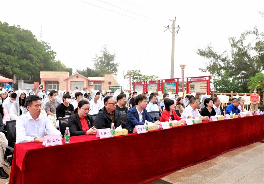 涠洲岛旅游区管委会副主任陆金旭,涠洲镇党委、政府负责人,党工委、管委会各部门负责人,管委会下属事业单位负责人,学校领导贺争平、韦静月、陶立阳、王斌和各二级学院、相关部门负责人参加仪式。(周小琪、文玉/摄)