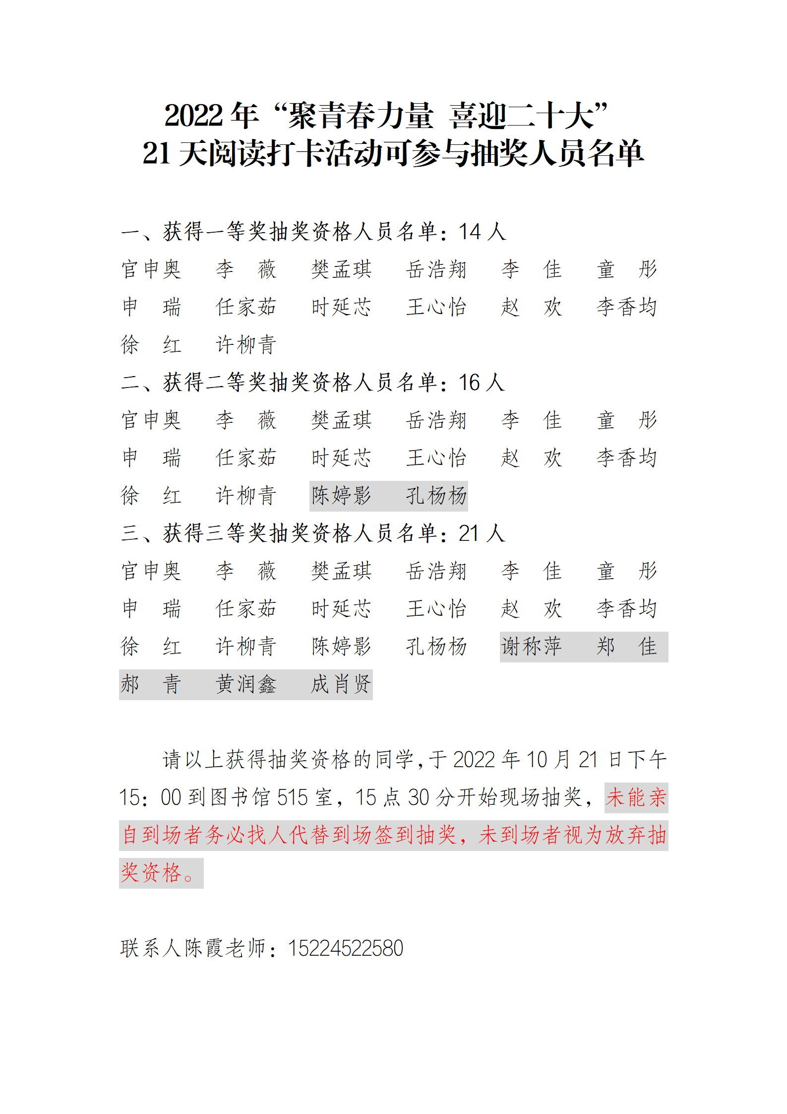 21天阅读打卡活动具有抽奖资格的名单