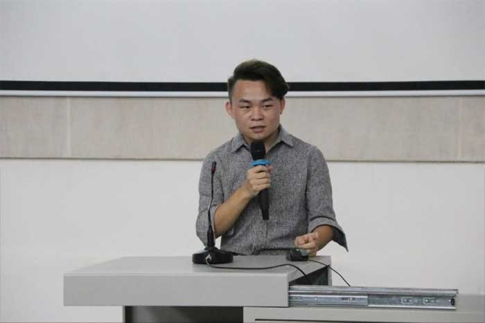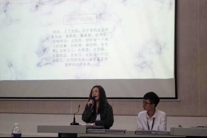 16级产品设计1606班何琦同学从两方面分享自己对设计的理解:1.什么是设计?2.怎样做好设计。给同学们传达了更丰富的专业技巧。并针对大一大二的同学给出了不同建议。