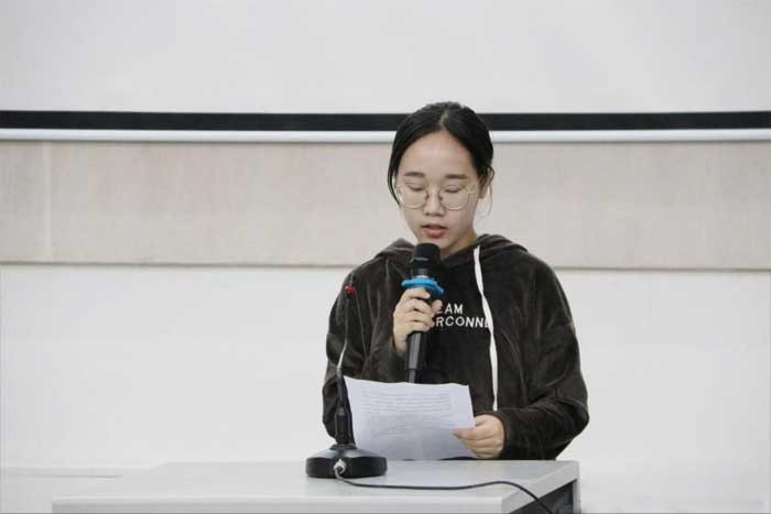 首先由优秀学生代表发言,就学习和生活两方面谈论了自身的经验及感悟。表示在学习上认真学好每一门课程,认真对待每一项作业,参加活动开阔视野、沟通能力。做一个全面发展的好青年好学生。