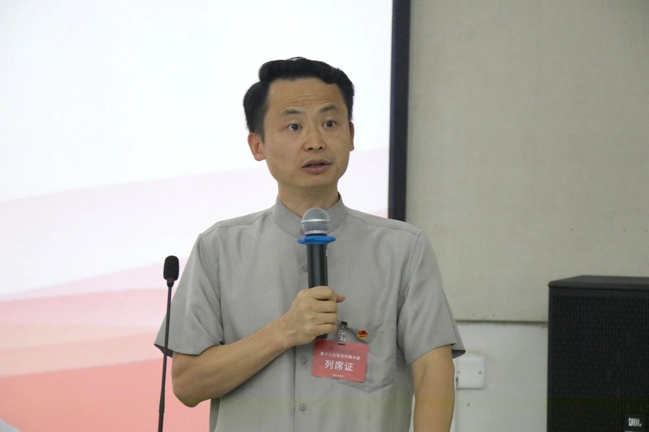 党委副书记刘承初发表讲话,他首先对本次大会的圆满召开致以热烈祝贺,并向长期以来为学校发展辛勤付出的老师和同学们表示衷心感谢。此外,他对全体与会代表及当选代表提出以下三点期望:一是严格要求自己,以高标准自律,秉持责任感、纪律性与严谨作风履职。二是不断提升自我,注重实践与能力提升,以扎实基础积淀经验,增强自身综合能力。三是树立团队精神,增强整体意识,凝聚团结力量。