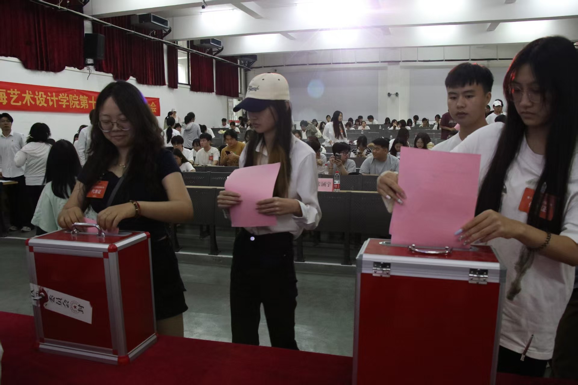 当悠扬激昂的校歌在会场内缓缓奏响,我校第十八次学生代表大会至此画上圆满句号。青春逢盛世,奋斗正当时,让我们将青春的智慧与力量倾注于学校的发展建设之中。在全体师生的勠力同心下,我校必将在新征程上镌刻下璀璨荣光,共同擘画更加灿烂的未来蓝图 。(高泽娅、戚叶洋/摄