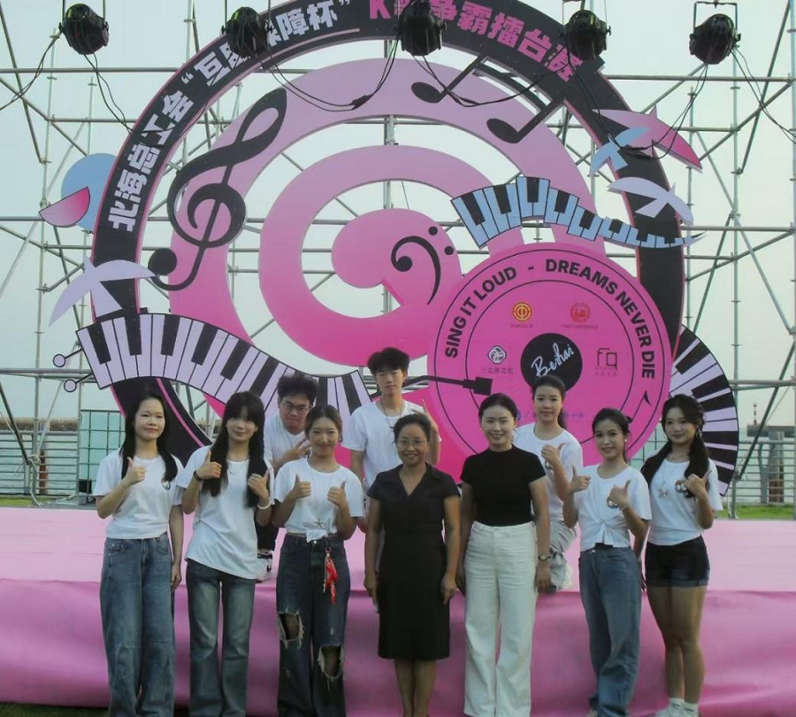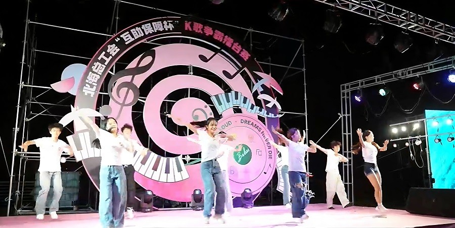 我校舞蹈学院精彩亮相北海市“互助保障杯”K歌争霸赛启动仪式,主题曲首演赢得满堂彩