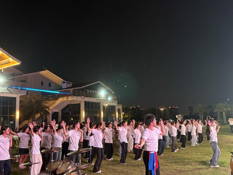 本次活动由北海市总工会、市委宣传部、市旅游文体局联合主办,旨在丰富职工精神文化生活,通过群众喜闻乐见的文艺形式,弘扬社会主义核心价值观。活动特邀我校舞蹈学院承担主题曲的舞蹈创排与首演任务。该任务由舞蹈学院常务副院长邓欢带领学生完成编创,他们将现代潮流元素与海洋文化意象相融合,通过极具律动感的肢体语汇,生动诠释了“北海等你来”的主题精神。当晚2030分,伴随着主题曲《北海等你来!》的欢快节奏,舞蹈学院谷欣怡、杨梓萌、梁铖苡、孙思、黄金子、段雨鑫、穆方泽、管沫凡、卯帅9名同学率先登场,以极富张力的领舞瞬间点燃现场气氛。随后,来自桂林电子科技大学(北海校区)、北海康养职业学院的百名学生鱼贯而入,三方学子默契联动,在星光舞台共同完成百人齐舞,掀起开幕式最高潮。掌声、欢呼声此起彼伏,线上直播浏览量直线上升。