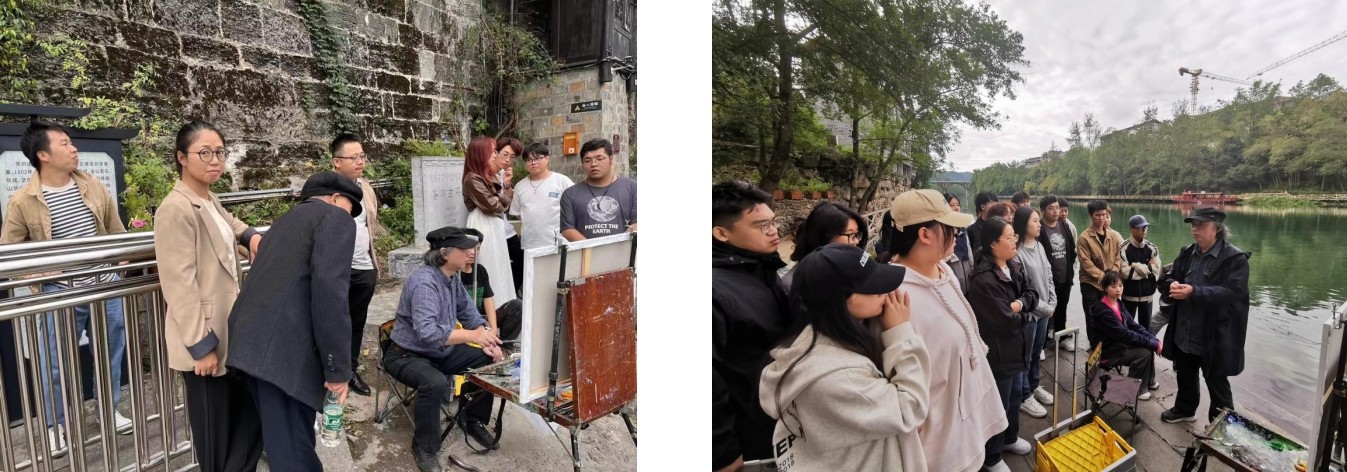 此次写生实践课程在美术学院曲湘建教授、美术学院刘斌院长、龚为副院长、美术学院专业教师唐海、陈建江袁志伟程宣睿熊晓翠段凝景思晔的带领下有条不紊地进行,活动内容丰富、学习成果丰硕,在长达一周的实践学习中圆满结束本次湘西写生活动课程