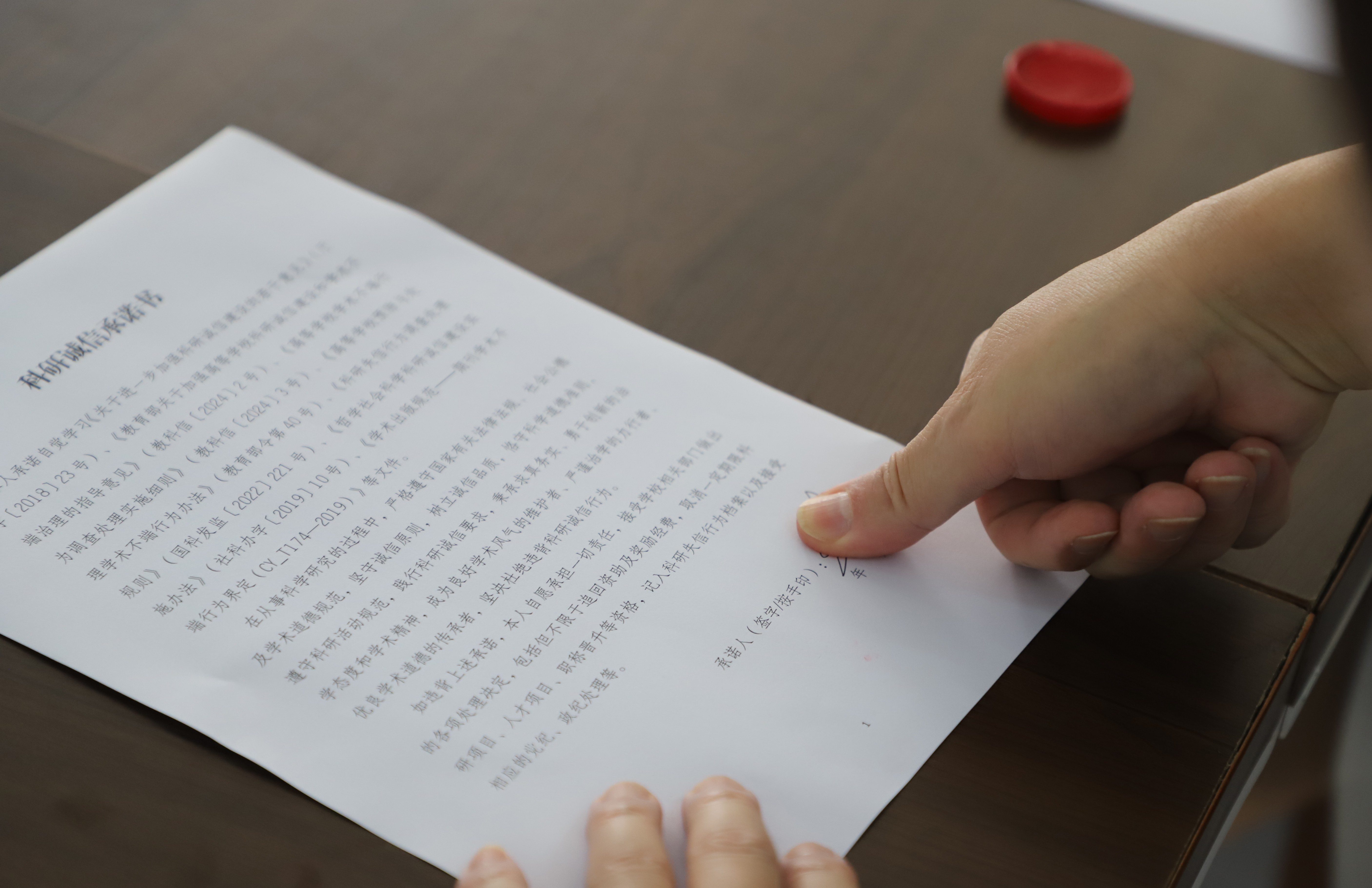 老师签署《科研诚信承诺书》