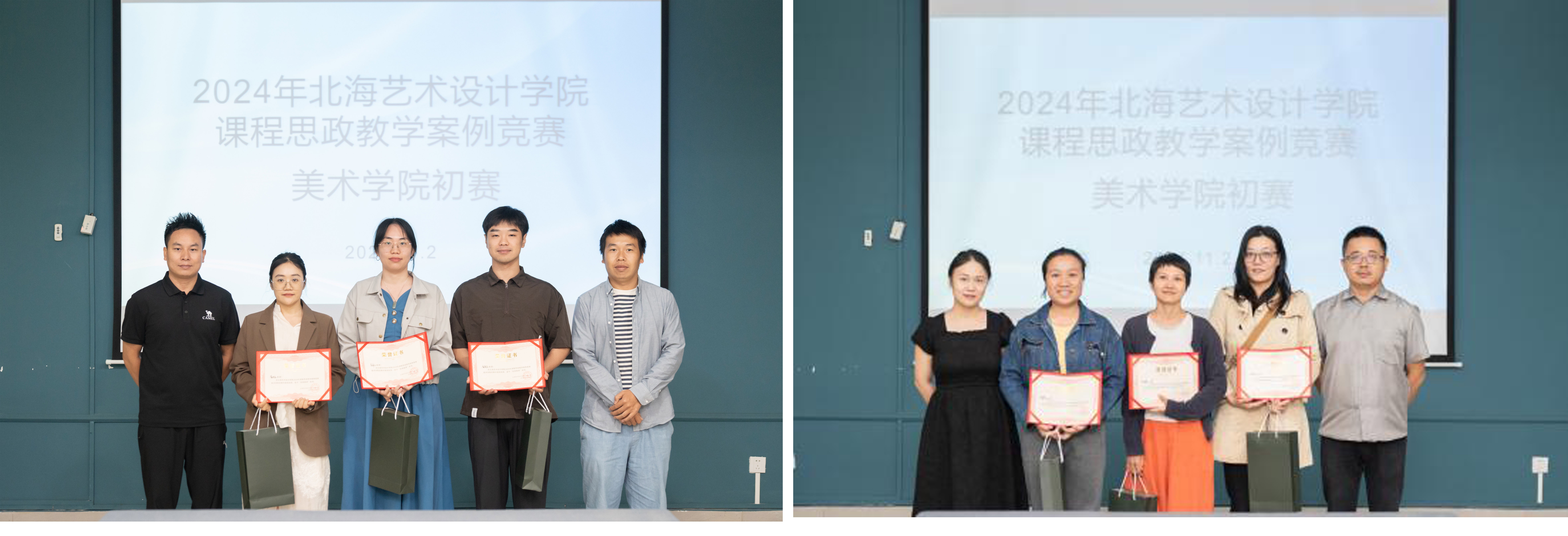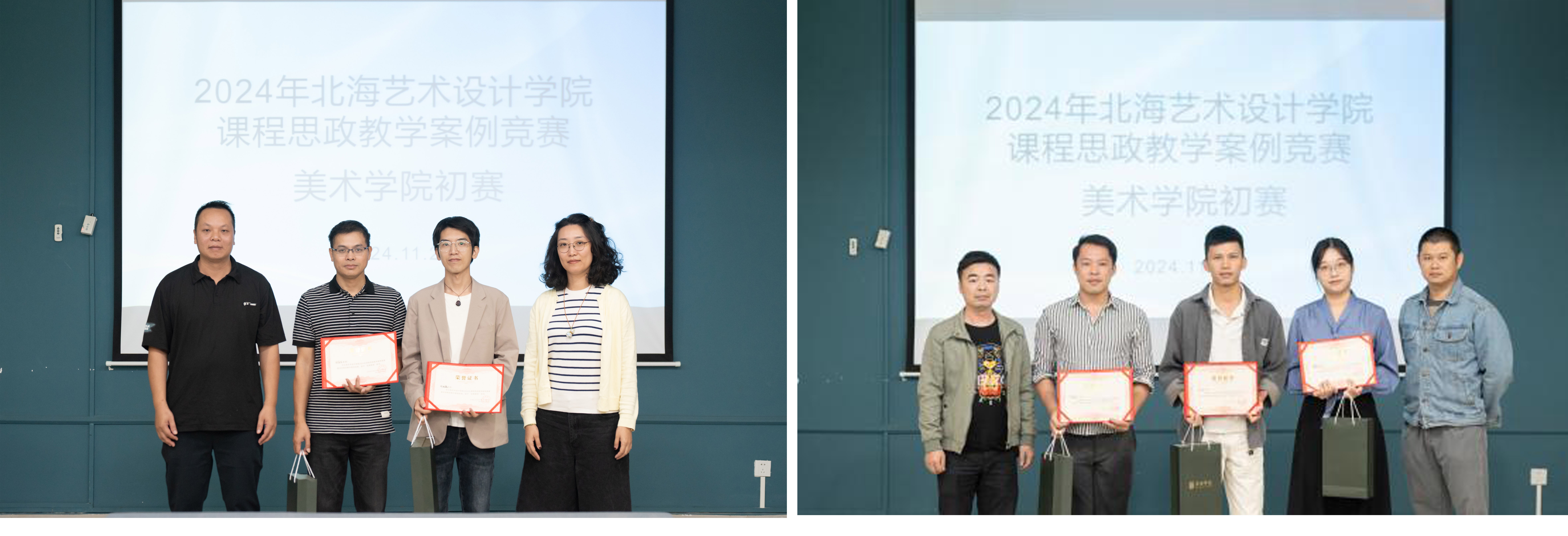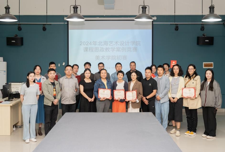 为全面贯彻党的二十大精神,深入落实立德树人根本任务,继续加强学院课程思政建设,提升教师课程思政教学能力,不断探索和创新课程思政教育教学方法,2024年北海艺术设计学院课程思政教学案例竞赛美术学院初赛于2024112日在艺术楼313和艺术楼513分组别举行,美术学院执行院长龚为,党总支书记韩玮,教学副院长肖玺,副院长金凯婧、陈建江、李炫勋,绘画教研室主任刘勇生,雕塑教研室副主任黄寿宁,实训主任袁志伟担任本次比赛评委。