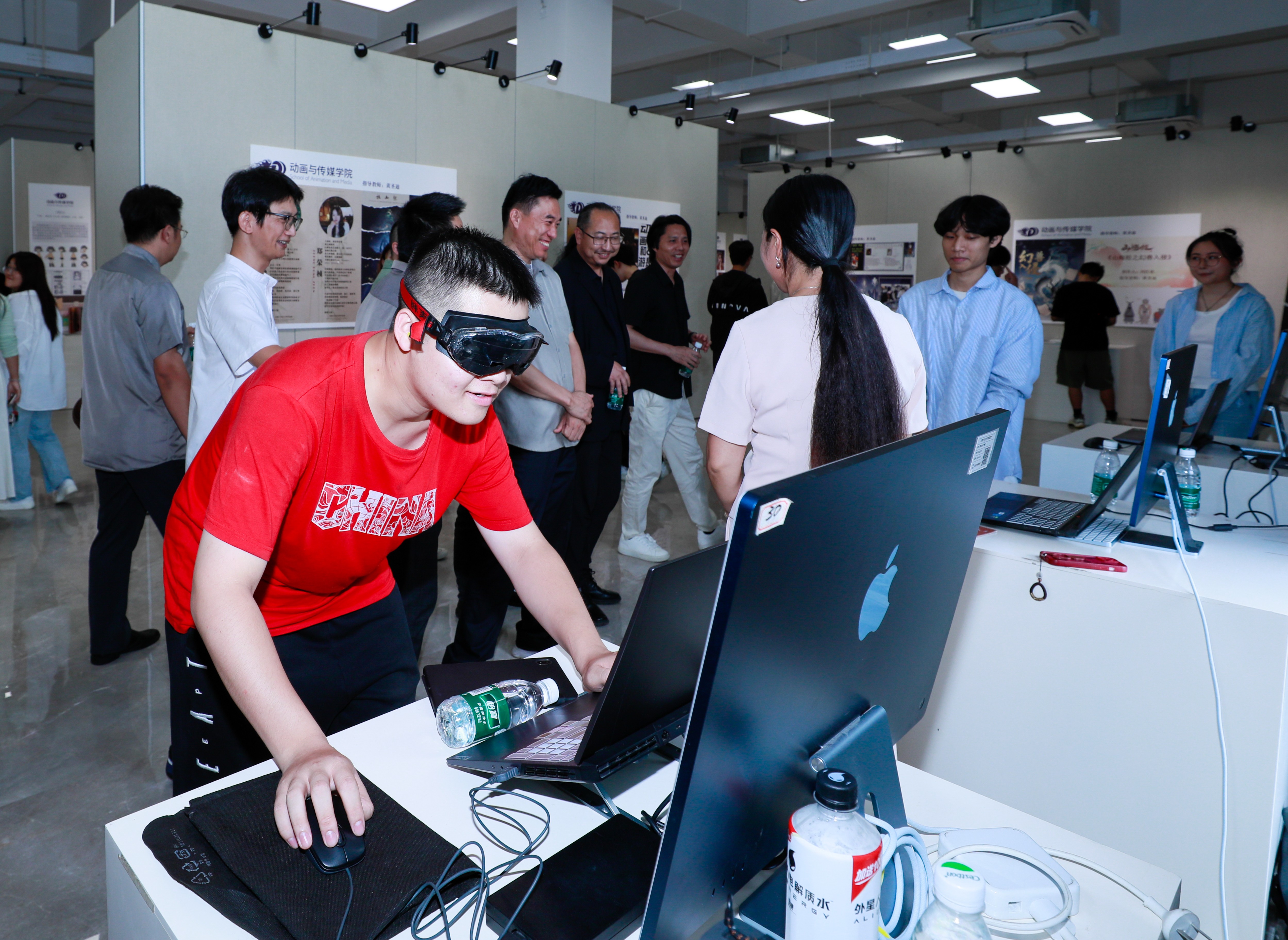 为深化教学成果展示,搭建艺术交流平台,激发学生创新活力,5月28日,我校影视动画学院“鲸鱼杯”第七届“和”动画作品联展开幕式在南区艺德楼九楼北展厅成功举办。本届联展汇聚14门核心课程的四百余件作品,以多元视角呈现动画艺术的魅力。北海艺术设计学院副校长陶立阳、教务处长武鹏程、美术学院院长龚为、建筑与环境艺术学院院长张春平、动画与传媒学院党总支书记张帆、院长孙永辉等学院领导嘉宾及师生共同参与,见证这场艺术与创意的盛宴。