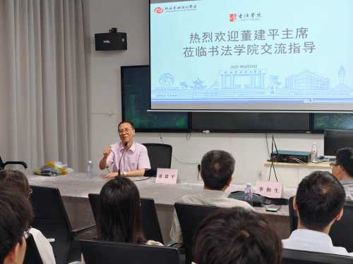 座谈会上,董建平主席围绕“技、艺、道”三个层面,系统阐述了书法创作的核心要义。他强调,“书法不仅是线条的艺术,更是文化的载体”,指出当代书法工作者应在扎根传统的基础上,以文化修养激活笔墨语言。李和生主席作补充发言,进一步拓展了讨论的深度与广度。现场师生围绕书法学习、传承路径与当代创新等议题踊跃交流,气氛热烈。