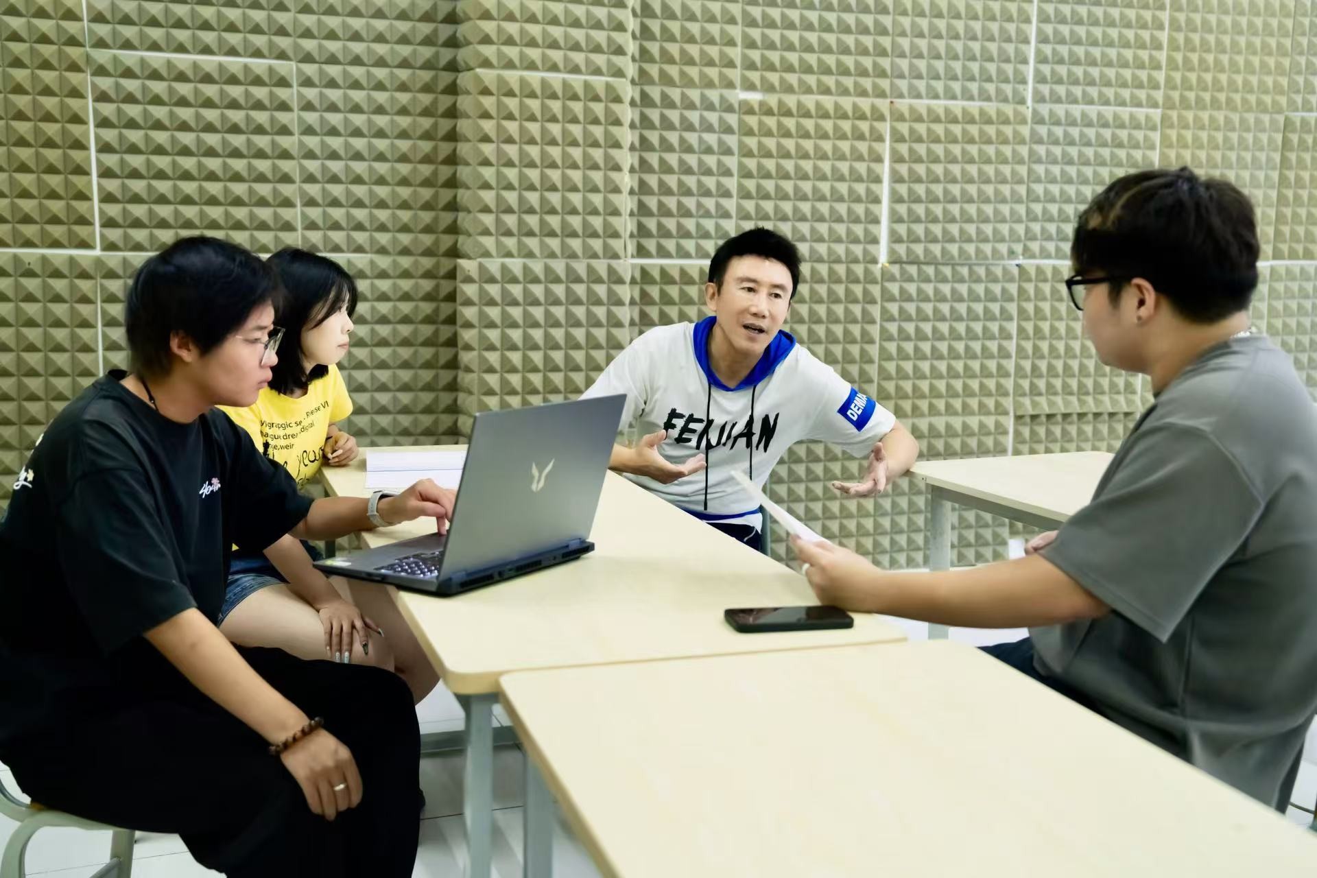前段时间排演,我们大部分以线上形式推进。隔着屏幕的排练,少了面对面的辅导与默契,但彼此又多一份真心和用心。从台词节奏到情感落点,每一次的发音,每一处语气的偏差,每一人物的塑造,王玥教授都会逐句帮我们校准。无论是谁的部分我们都相互学习,共同进步。