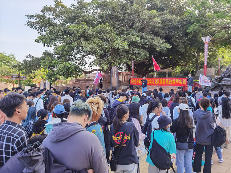 为了让同学们更好的了解涠洲岛,也为了让同学们思想上有所提高,我校思政部的姜教授带领同学们来到红色广场,给同学们声情并茂地讲述了涠洲岛的抗战历史。九十年前,大革命时期的斜阳岛农军根据地;抗战时期,涠洲岛民全歼侵岛日军的英雄壮举;解放战争时期,首创"木船打军舰"的经典战例……这些历史不再是文字,而是真正的展示在同学眼前。让同学们切身感受浓厚的红色氛围,接受红色精神的洗礼,在写生过程中了解和重温历史,感受革命先烈为这座海岛英勇奋战的光辉历史,使同学们受到教育和启迪,这也正是本次将思政课堂搬到写生现场应该达到的目的。