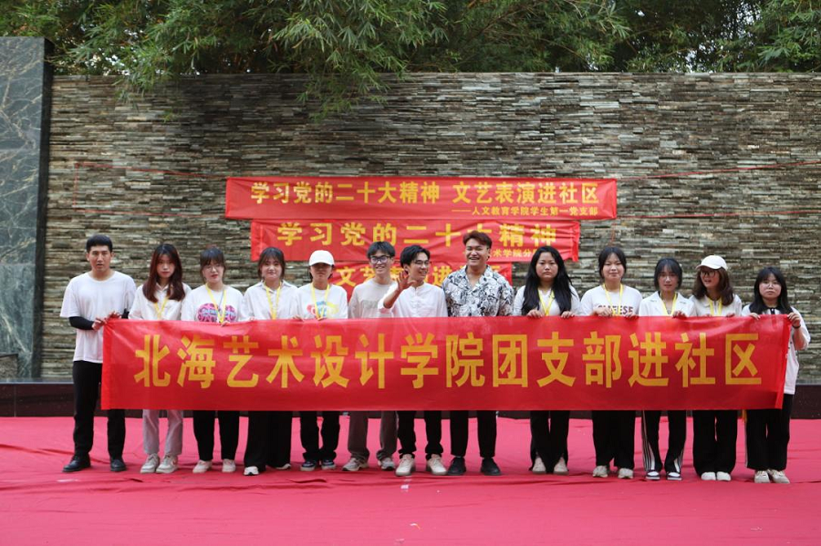 1029日,北海艺术设计学院人文教育学院分团委举行的文艺表演进社区实践活动在北海市橄榄苑小区如约举行。