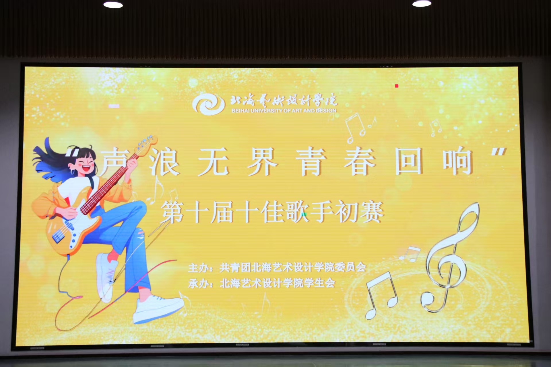 青春的旋律需要舞台绽放,年轻的声音渴望被世界听见!为丰富校园文化生活,提升学生艺术审美素养,展现新时代青年朝气蓬勃的精神风貌,我校以“声浪无界,青春回响”为主题的校园十佳歌手海选于4月25日晚在西校区大礼堂顺利开展。出席本次活动的评委老师分别是张涵宇老师、刘琛钊老师、张纭逢老师。