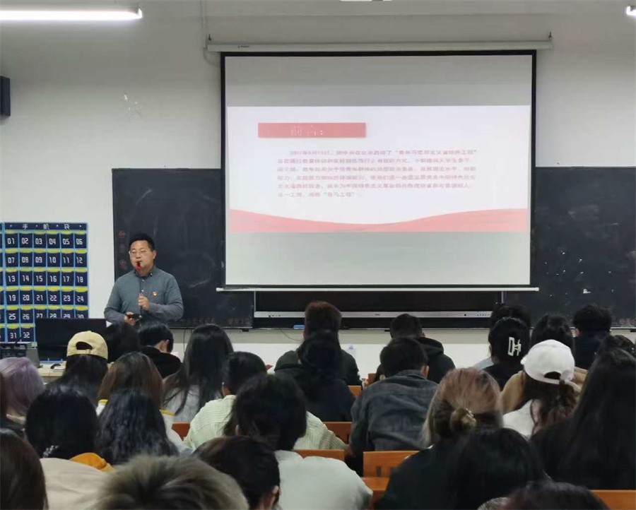 马克思主义学院教师何敏芝详细讲述了中国共青团的发展历程,强调了马克思主义思想是我们立党立国、兴党兴国的根本指导思想,她鼓励同学们开阔思维、大胆创新、追寻梦想,并对青年大学生日后的实践工作做出具体指导,为广大学子学习及工作实践指明了奋斗方向。