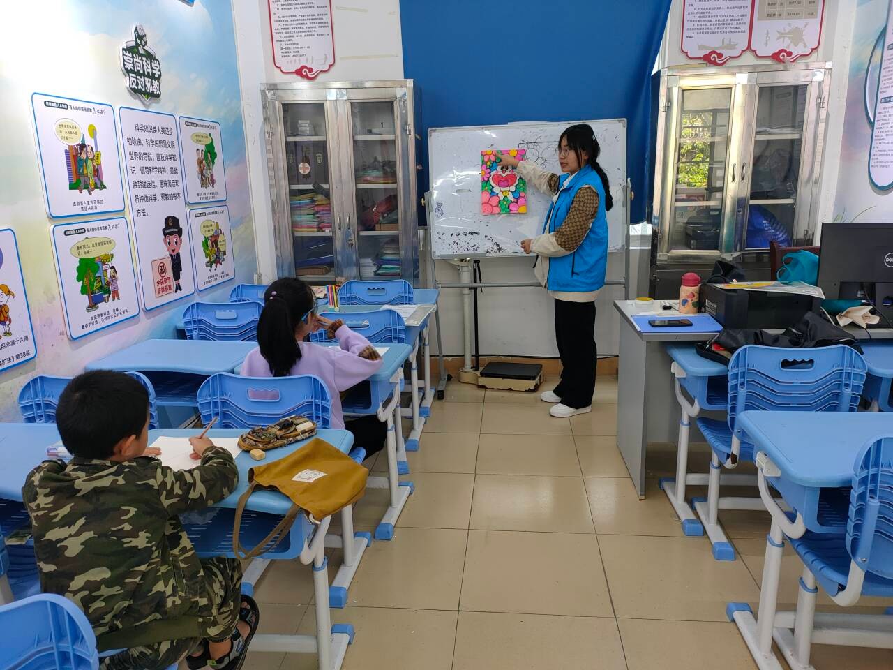 贡献青春力量,书写青年担当。2023年11月18日,我校团委青年志愿者协会数名志愿者前往北部湾社区、赤东村、疍家小镇和侨北社区开展本周的支教课堂。此次周末课堂包含了绘画创作和手工创作两种形式,志愿者们将自身所学知识融入实践中,耐心教导每一位学生,帮助他们创造出独具个人特色的作品。
