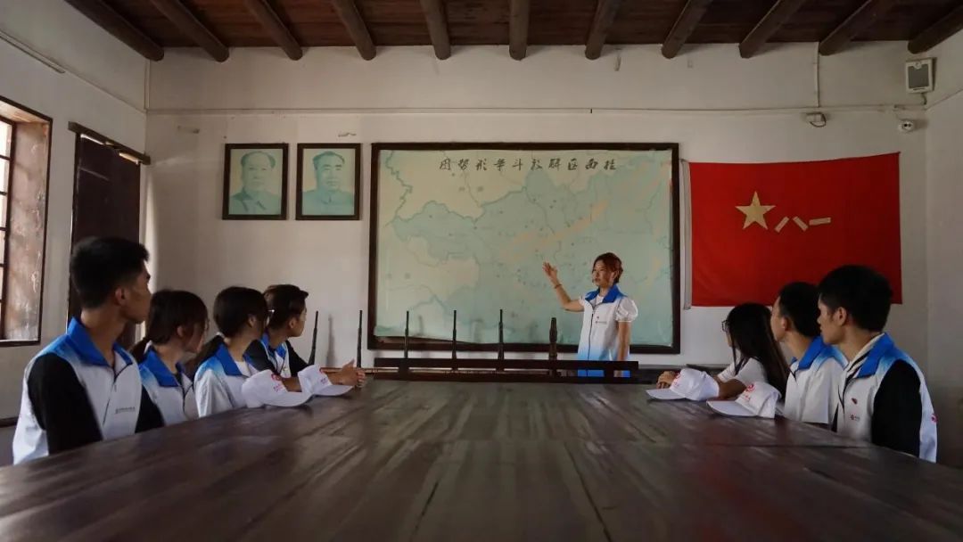 在学习室,唐书记带领我校师生代表学习了大化地区的艰辛革命历程与优良的革命精神。他指出,大化瑶族自治县古河革命纪念馆是中国人民解放军滇桂黔边纵队桂西区指挥部原址,同时桂西区是红军时期广西创建的苏维埃政权之一。我们当代大学生通过这次的学习与考察,要继承和发扬党的优良作风,艰苦奋斗,用行动来践行为人民服务的宗旨。